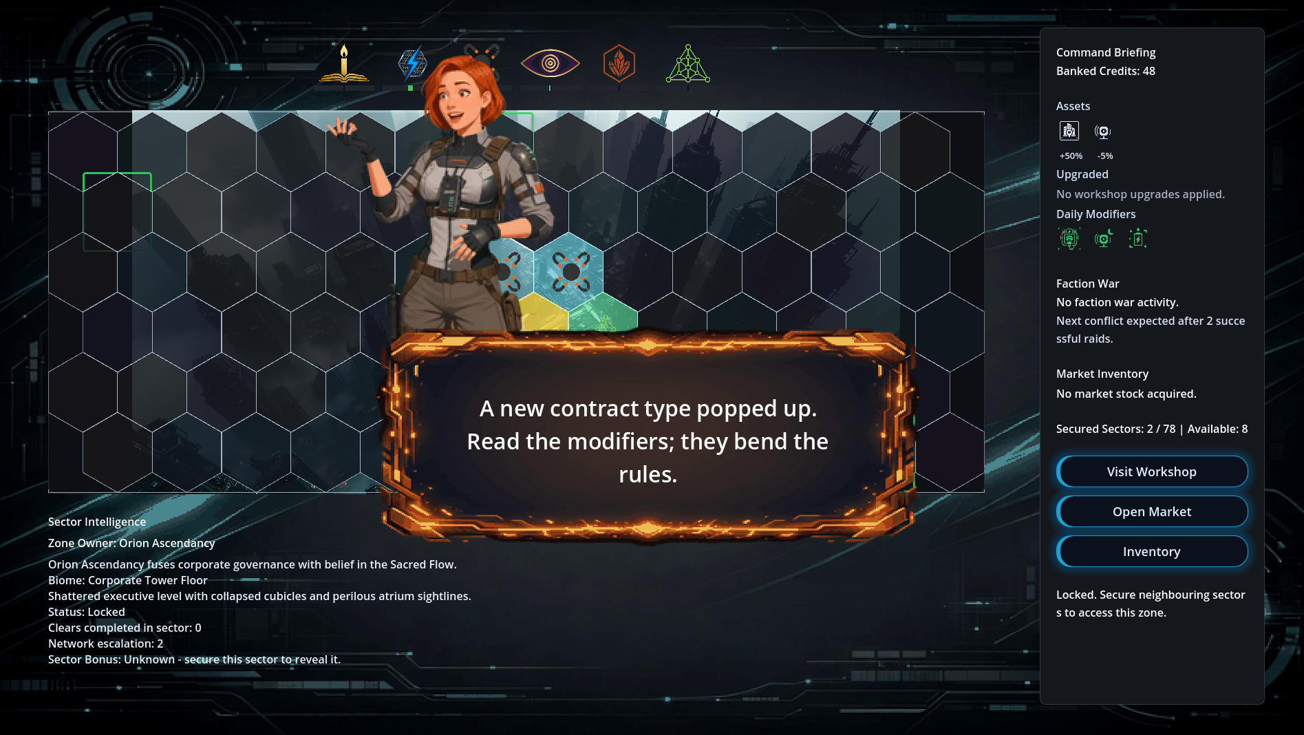Capture new districts to unlock persistent bonuses.