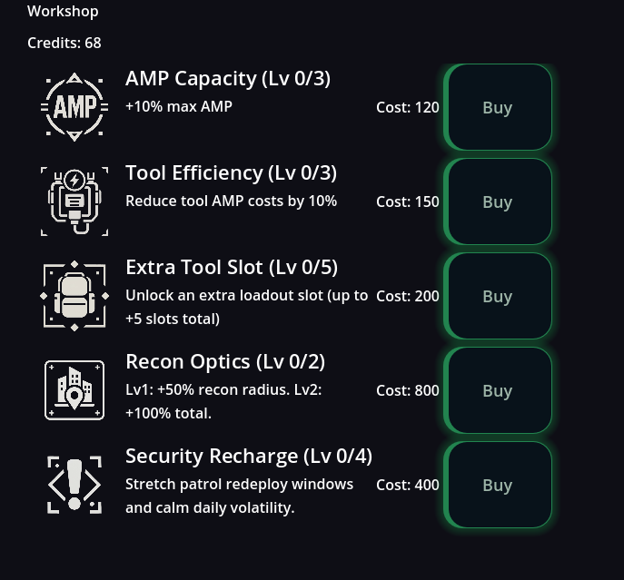 Invest Credits, unlock perks, push deeper next run.